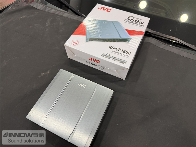 原车主机解析力一般,导致音频信号质量也不大理想。所以技师为音响系统添加了一台日本JVC KS-EP1800,它支持全景声、动态低音补偿、每通道独立31段EQ,同时还支持调音,可以充分满足不同用户的个性化需求。除此之外日本JVC KS-EP1800还内置了功率功放,有效保证了功率稳定,让声场喇叭充分发挥出其应有的效果。