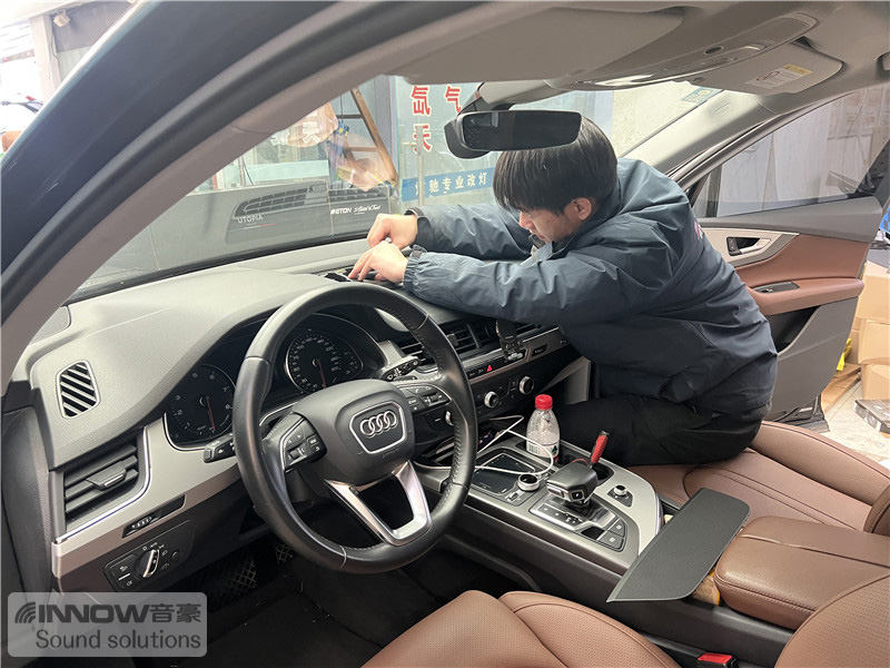 因为工作的原因,这台奥迪Q7的车主平时用车比较多,为了打发无聊的时光,车主养成了开车时听音乐的习惯,然而原车音响系统配置不够完善,汽车播放出来的音乐效果也不是很理想,经朋友介绍,车主来到上海音豪,为爱车做音响升级。
