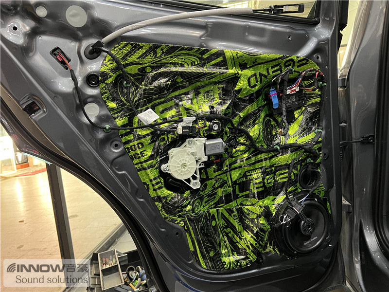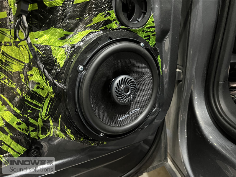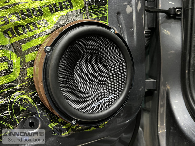 在使用俄罗斯StP 平衡卫士止震板对门板做了隔音处理后,技师将前声场喇叭升级成了哈曼卡顿 FIT 6CF两分频喇叭,它的中低音单元使用了Plus One振盘,这让其振膜面积更大,也让音乐的中低音部分更加强劲;高音单元也经过和特殊的设计,让高频部分清晰亮丽。