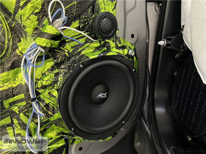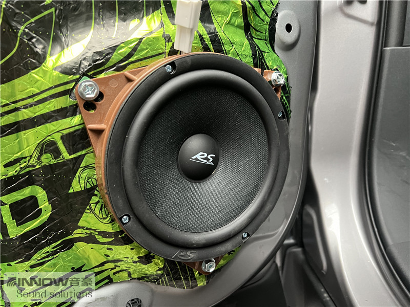 后声场使用的同样也是德国RS smart 165两分频喇叭,充分保证了音乐味道的统一性,这套声场喇叭的尺寸设计合理,安装深度较浅,直接安装在后门板原位就可以,不需要对汽车的原有线路做任何的改动。