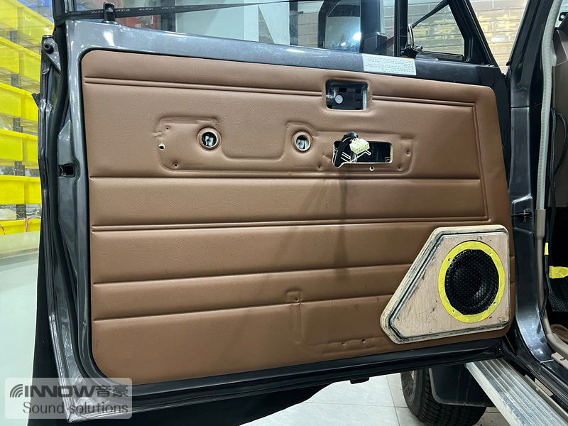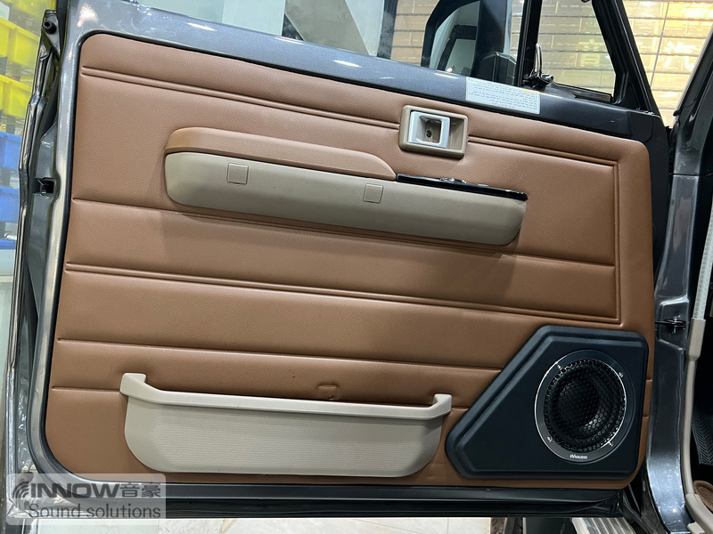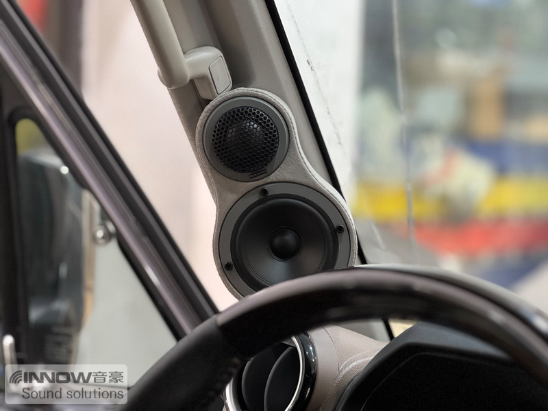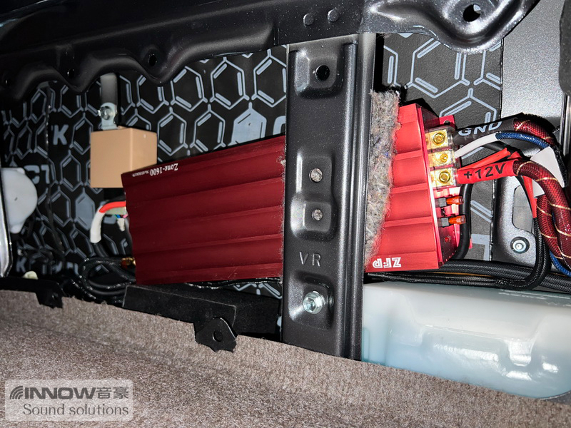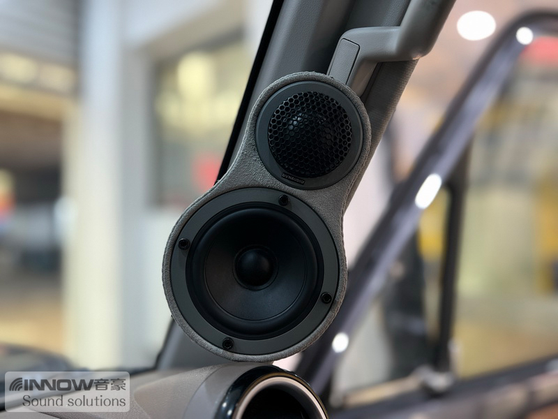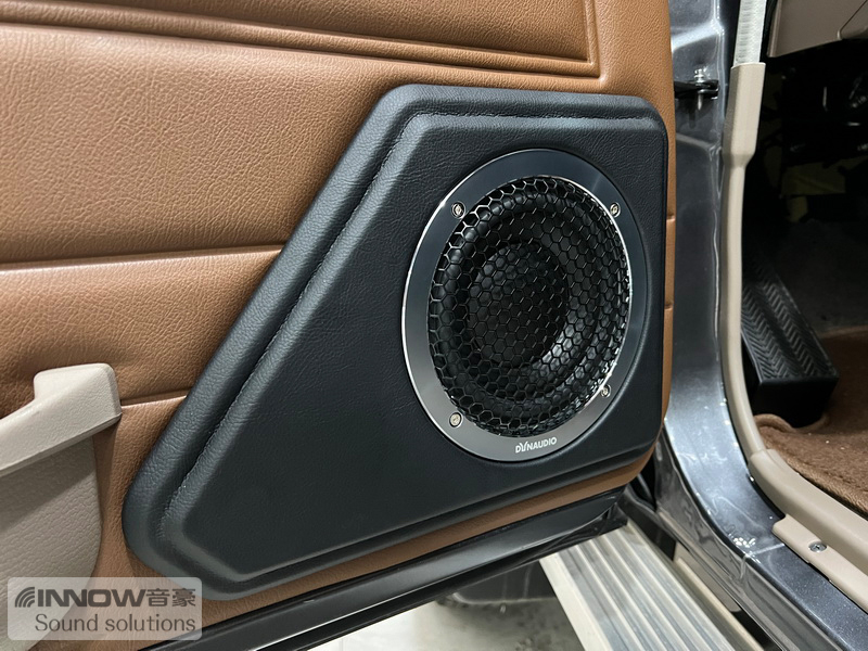 在使用欧洲环保隔音CTK 欧尊止震板,对门板做了双层隔音处理后,技师将前声场喇叭升级成了丹麦丹拿 372三分频喇叭,它的中音和中低音单元使用的是MSP镁硅酸盐混合物音盆,这让音乐的中频部分更加饱满,中低音部分更加沉稳;高音使用的是丝膜球顶设计,可以很好的拉高整体声场,让音乐显得更加通透。德国伊顿 150.4四路功放功放的添加,则解决了声场喇叭功率供给不足的问题,让声场喇叭可以充分发挥出其应有的效果。
