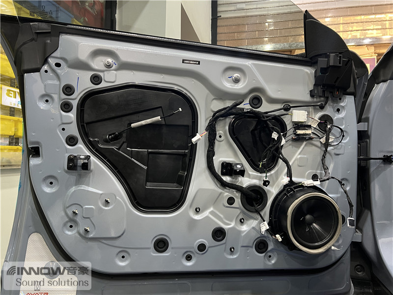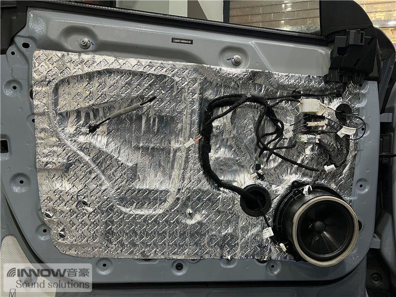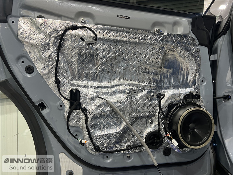 经过检测,技师发现原车的噪声主要有两种,第一种是外界传入的风噪;第二种是路噪和胎噪。因此技师使用欧洲环保隔音CTK,对汽车的门板和四轮翼子板,做了针对性的隔音处理。