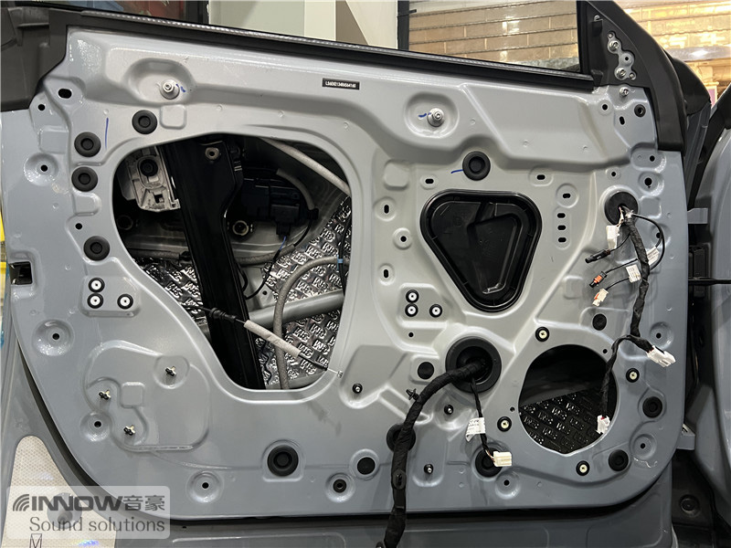 原车门板内部空洞结构较大,且未做有效隔音处理,风噪会通过门板传入到车厢内部,技师使用欧铂止震板对门板做双层止振处理,让门板形成一个密封箱体,有效阻止风噪的传入。