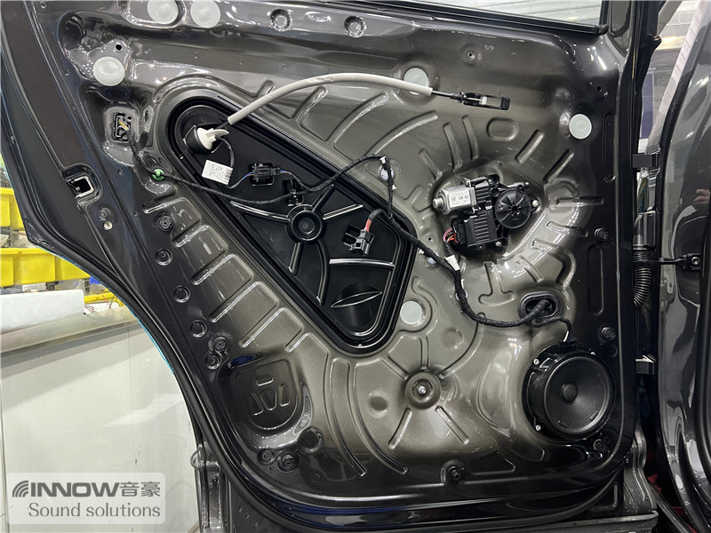 经过道路测试,技师发现原车的噪声主要有两种,第一种是风噪;第二种是路噪和胎噪,因此技师使用欧洲环保隔音CTK,对汽车的门板和四轮翼子板,做了针对性的隔音处理。