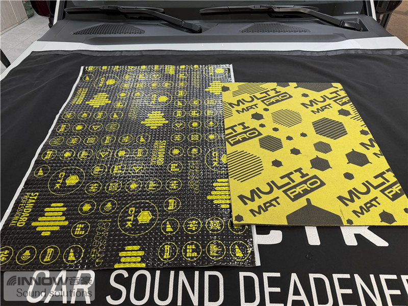 经过检测,技师发现原车的噪声主要有两种,第一种是风噪;第二种是路噪和胎噪。因此技师使用欧洲环保隔音CTK,对汽车的门板和四轮翼子板,做了针对性的隔音处理。