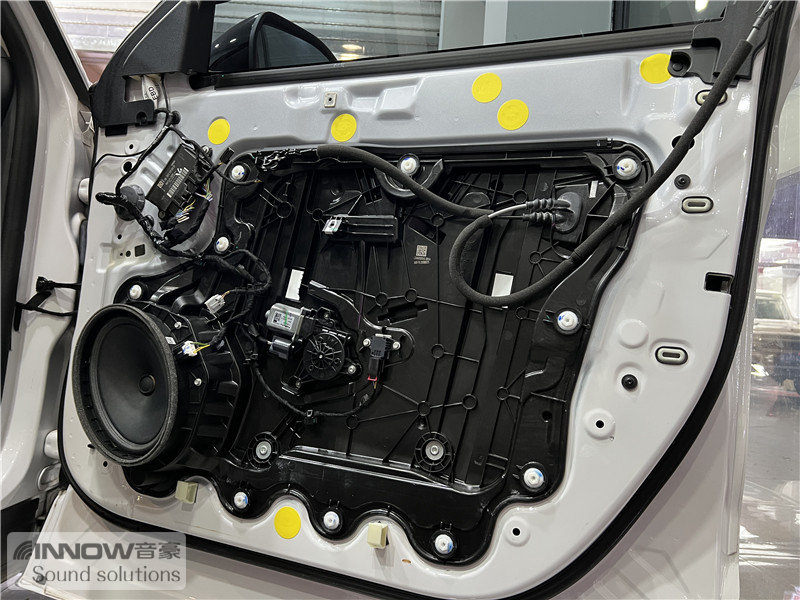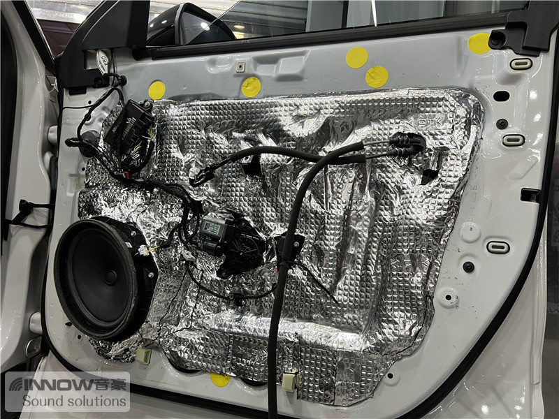 原车门板内部隔音措施较为欠缺,风噪很容易通过门板传入到车厢内部,技师使用欧铂止震板对门板做双层止振处理,让门板形成一个密封箱体,有效阻止风噪的传入。