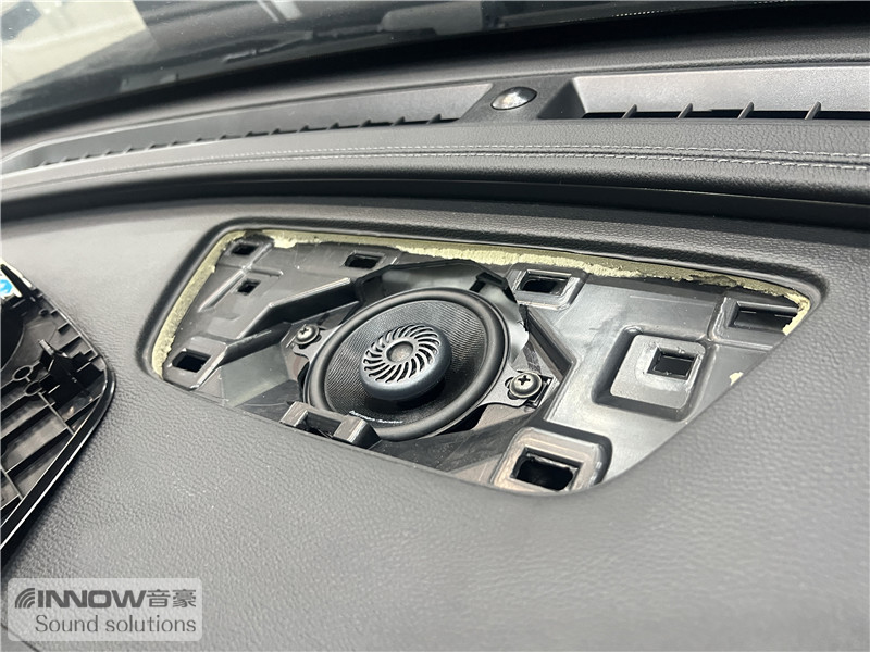 为了将音乐做到仪表台上,技师将中置喇叭升级成了哈曼卡顿 FIT 3F中音喇叭,它的细节展现到位、还原度高,和前声场喇叭配合,可以有效增加音乐的立体感和层次感。