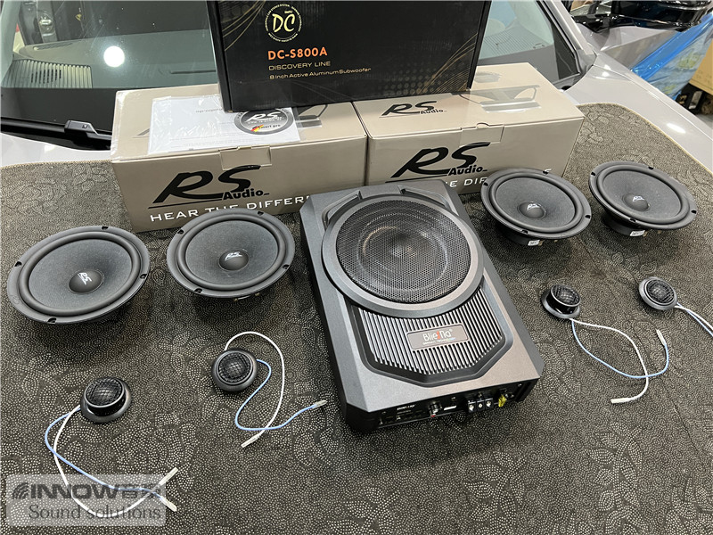 后声场使用的同样也是德国RS smart 165两分频喇叭,充分保证了音乐味道的统一性,这套声场喇叭的尺寸设计合理,安装深度较浅,直接安装在后门板原位就可以,不需要对汽车的原有线路做任何的改动。