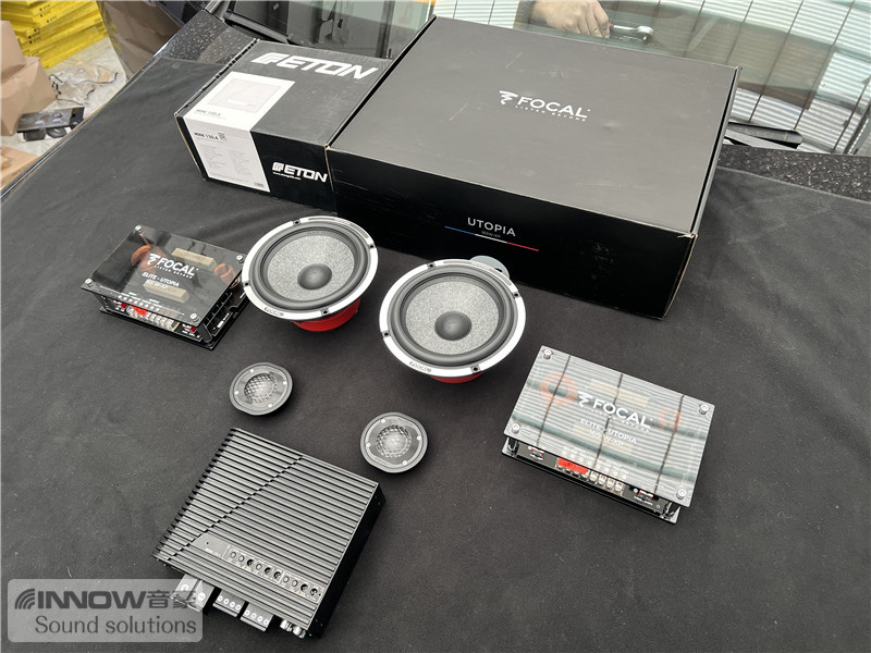 隔音完成后,技师将前声场喇叭升级成法国劲浪 小乌托邦两分频喇叭,它的中低音单元使用了”W”三明治夹层音盆,这使得其动态表现十分出众;高音使用的是纯铍倒圆顶高音,有效拉高了整体声场,让音乐显得更加通透、自然。为了让声场喇叭发挥出其应有的效果,技师还为前声场喇叭添加了德国伊顿 150.4四路功放。