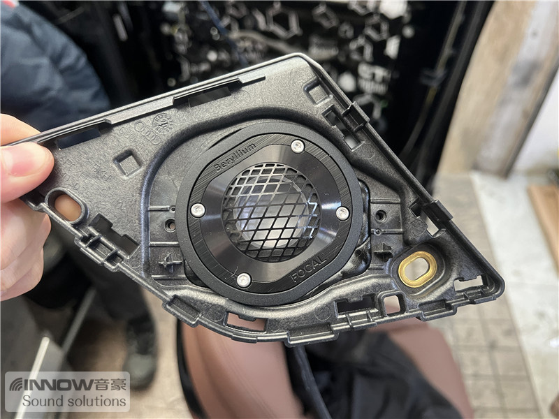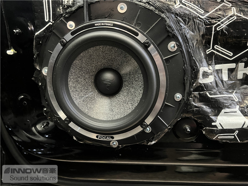 原车门板隔音措施欠缺,门板处产生的噪声会对音响品质产生非常大的影响。技师使用欧洲环保隔音CTK 欧尊止震板对门板做止振处理,减少门板处的噪声,为声场喇叭提供了一个良好的工作环境。