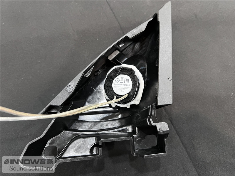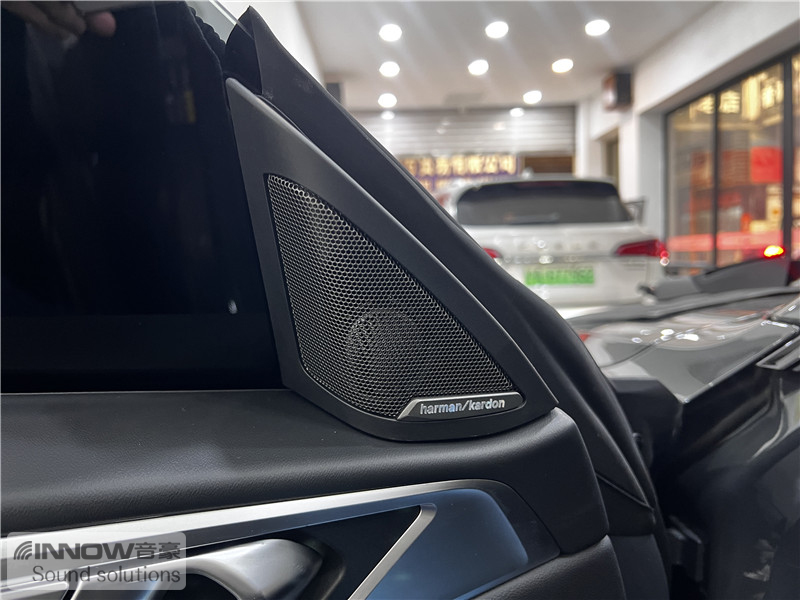 前声场使用的是哈曼卡顿 宝马专用高音,作为宝马专车专用的产品,它的尺寸设计与原车声场喇叭一致,直接安装在骑车原位就可以,不需要对汽车原有线路做任何改动。而在产品设计上,它又沿用了哈曼卡顿先进的技术,使得其播放出来的音乐更加真实动听。为了提升视觉体验,技师还特意使用了宝华高音网罩。