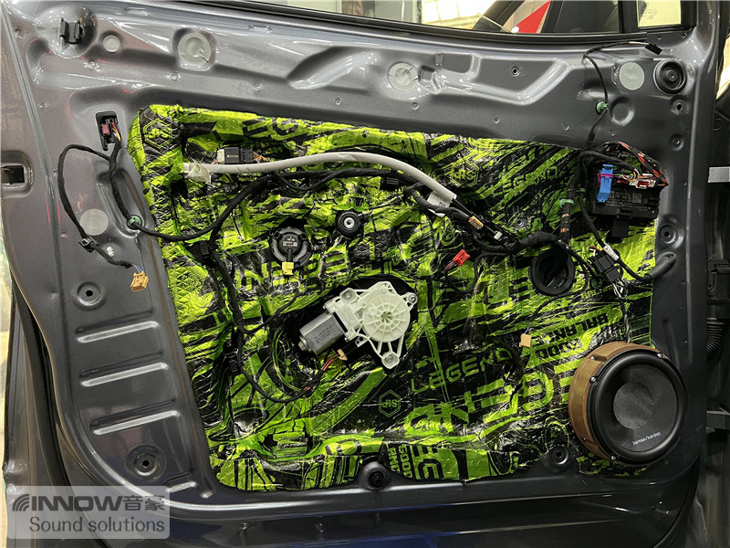 在使用俄罗斯StP 平衡卫士止震板对门板做了隔音处理后,技师将前声场喇叭升级成了哈曼卡顿 FIT 6CF两分频喇叭,它的中低音单元使用了Plus One振盘,这让其振膜面积更大,也让音乐的中低音部分更加强劲;高音单元也经过和特殊的设计,让高频部分清晰亮丽。