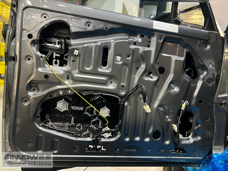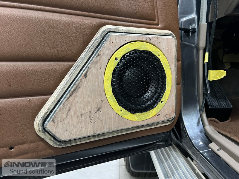 为了让声场喇叭充分发挥出其应有的效果,技师经过反复的声场定位以后,最终通过倒模安装工艺,将中低音单元安装在了门板处,而中音和高音单元则安装在了A柱。