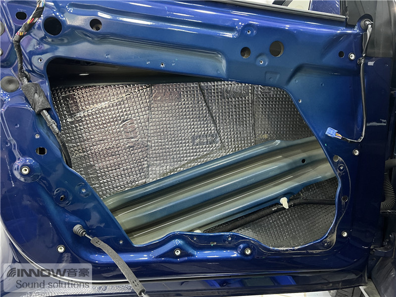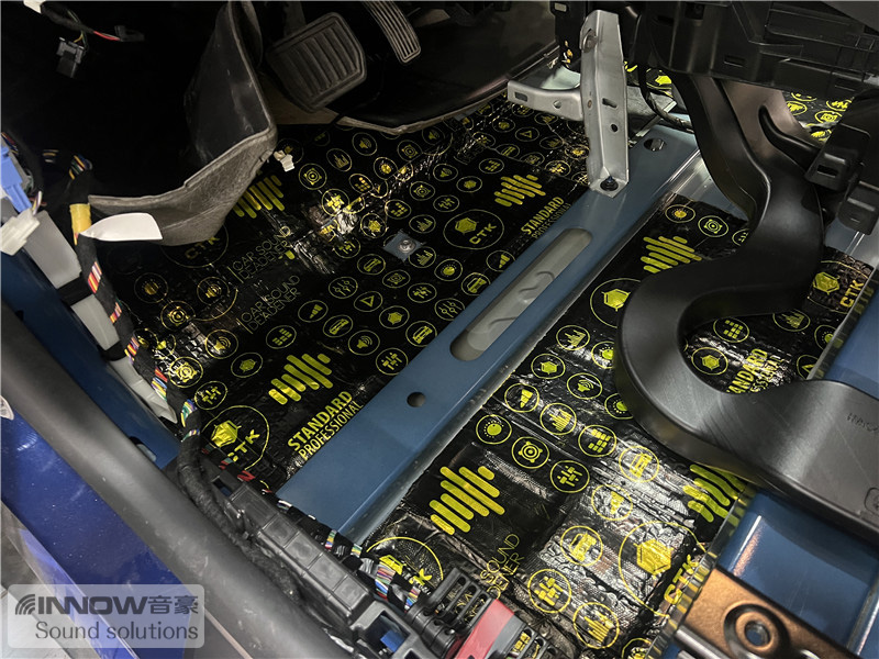 在对汽车做了道路实测后,技师发现原车的噪声主要为风噪、路噪、胎噪,以及来自发动机舱内的噪声几种,因此技师使用欧洲环保隔音CTK,对汽车的门板、四轮翼子板和仪表台下方,做了针对性的隔音处理。