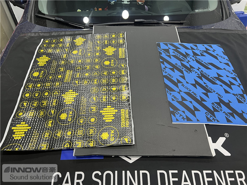 经过道路测试,技师发现原车的噪声主要分为两种,第一种是风噪;第二种是路噪和胎噪,因此技师使用欧洲环保隔音CTK,对汽车的前门板和四轮翼子板,做了针对性的隔音处理。