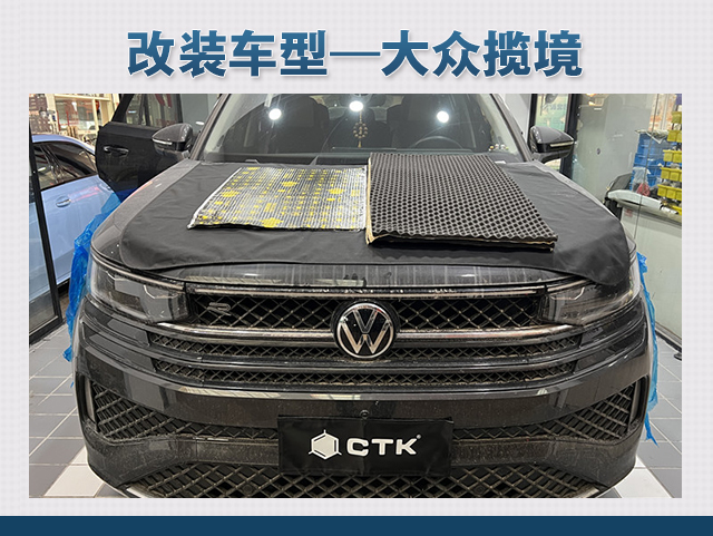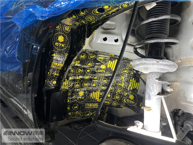 经过道路测试,技师发现原车的噪声主要有两种,第一种是风噪;第二种是路噪和胎噪,因此技师使用欧洲环保隔音CTK,对汽车的门板和四轮翼子板,做了针对性的隔音处理。