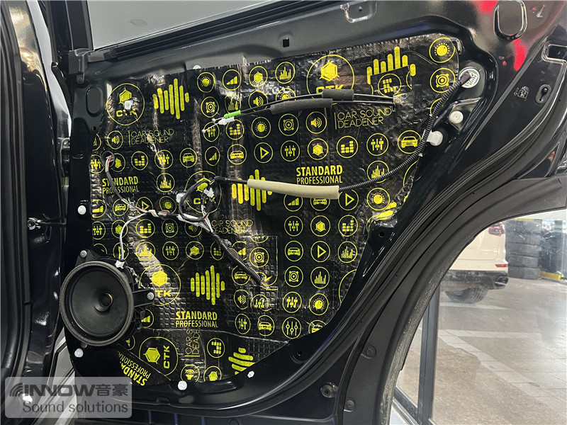 经过检测,技师发现原车在低速行驶时车厢内噪声还不是很明显,但随着车速的提高,风噪、路噪和胎噪也会随之而增大,因此技师使用 欧洲环保隔音CTK,对汽车的门板和四轮翼子板,做了针对性的隔音处理。