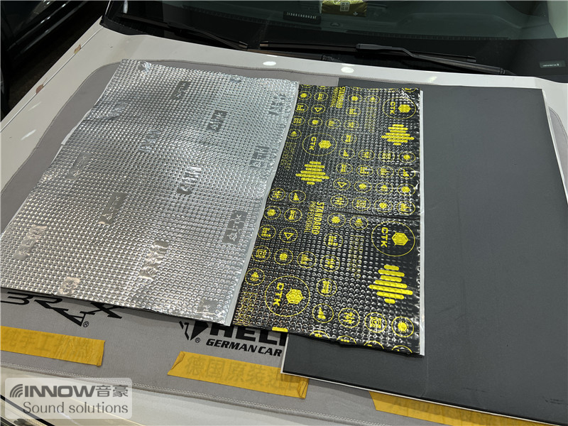经过检测,技师发现原车的噪声主要有两种,第一种是风噪;第二种是路噪和胎噪,因此技师使用CTK欧洲环保隔音,对汽车的门板和四轮翼子板,做了针对性的隔音处理。