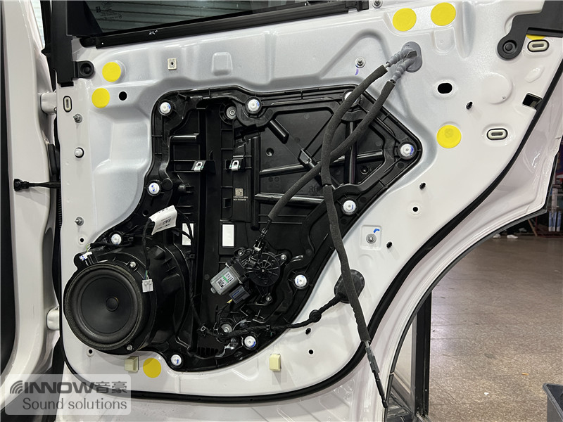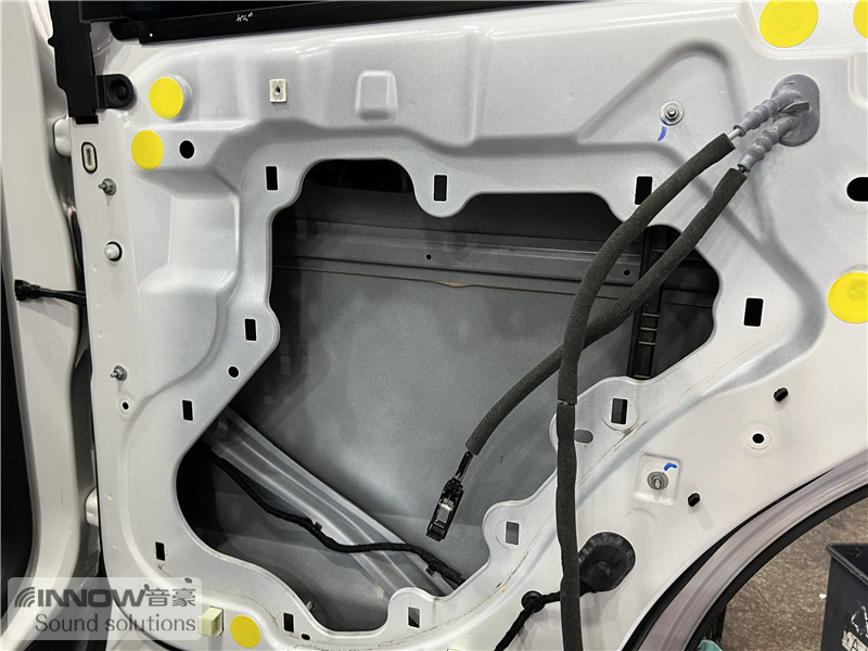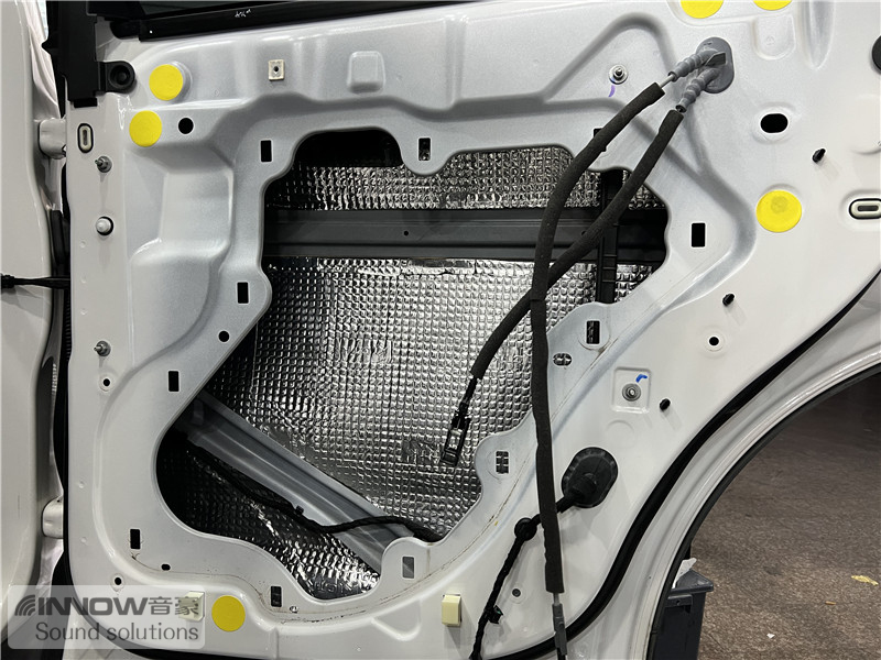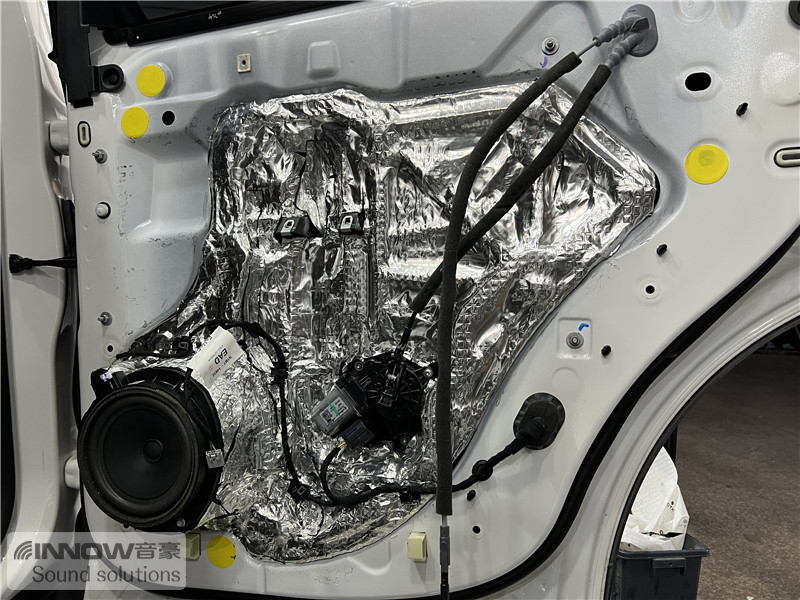 原车门板内部隔音措施较为欠缺,风噪很容易通过门板传入到车厢内部,技师使用欧铂止震板对门板做双层止振处理,让门板形成一个密封箱体,有效阻止风噪的传入。