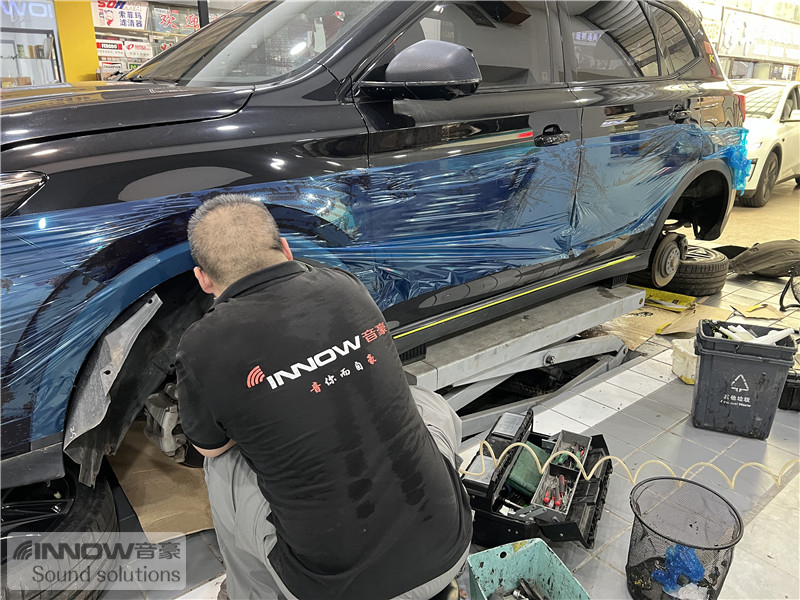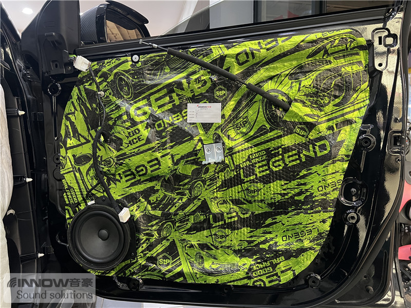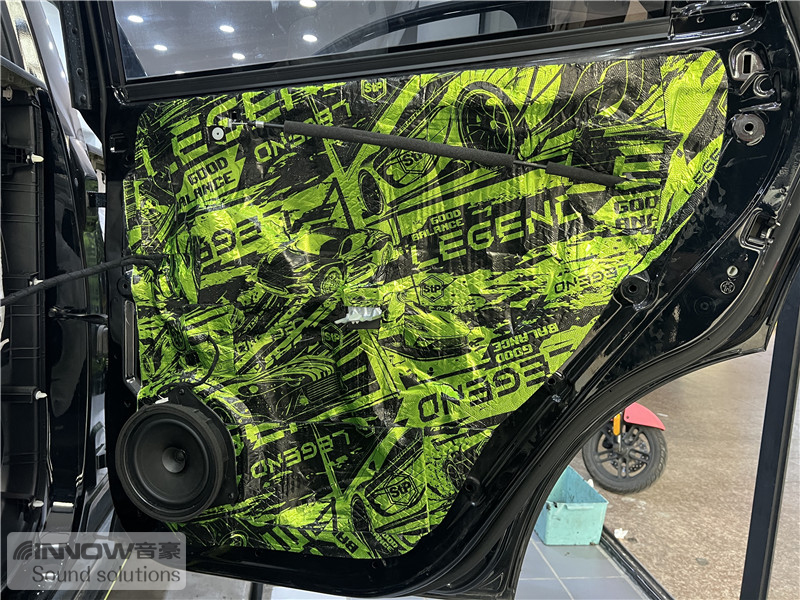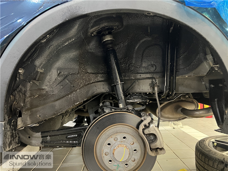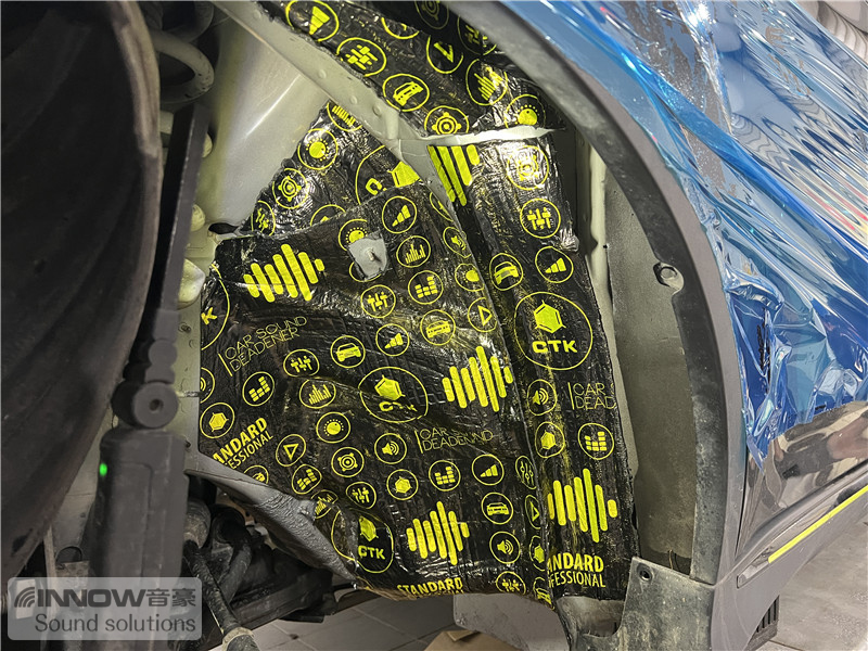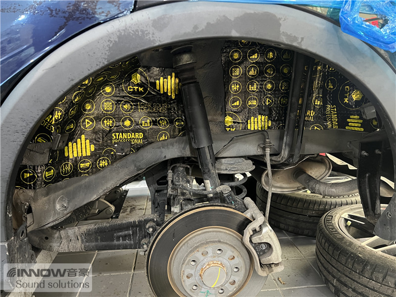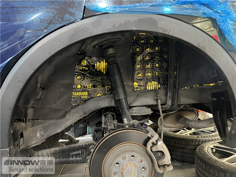 经过检测,技师发现原车的噪声主要有两种,第一种是风噪;第二种是路噪和胎噪,因此技师使用欧洲环保隔音CTK,对汽车的门板和四轮翼子板,做了针对性的隔音处理。