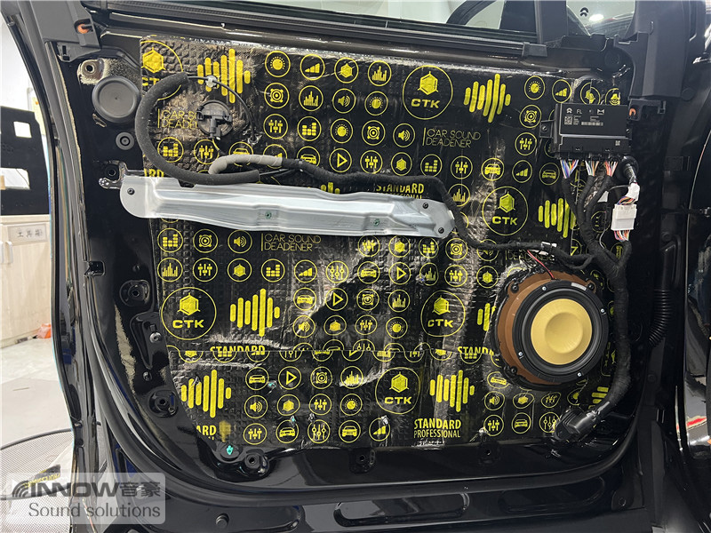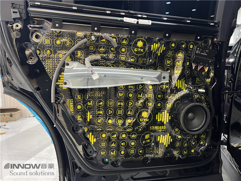 经过检测,技师发现原车的噪声主要有两种,第一种是风噪;第二种是路噪和胎噪,因此技师使用欧洲环保隔音CTK,对汽车的门板和四轮翼子板等部位,做了针对性的隔音处理。